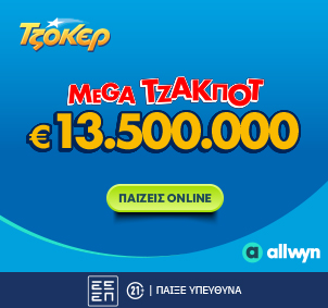 Το μεγάλο έπαθλο της πρώτης κατηγορίας (€13.500.000), αλλά και το έπαθλο των €100.000 στη δεύτερη κατηγορία, έχουν την ευκαιρία να διεκδικήσουν οι παίκτες του ΤΖΟΚΕΡ, συμμετέχοντας στην κλήρωση και διαδικτυακά, από όπου κι αν βρίσκονται, μέσω του allwyn.gr και του Allwyn App.