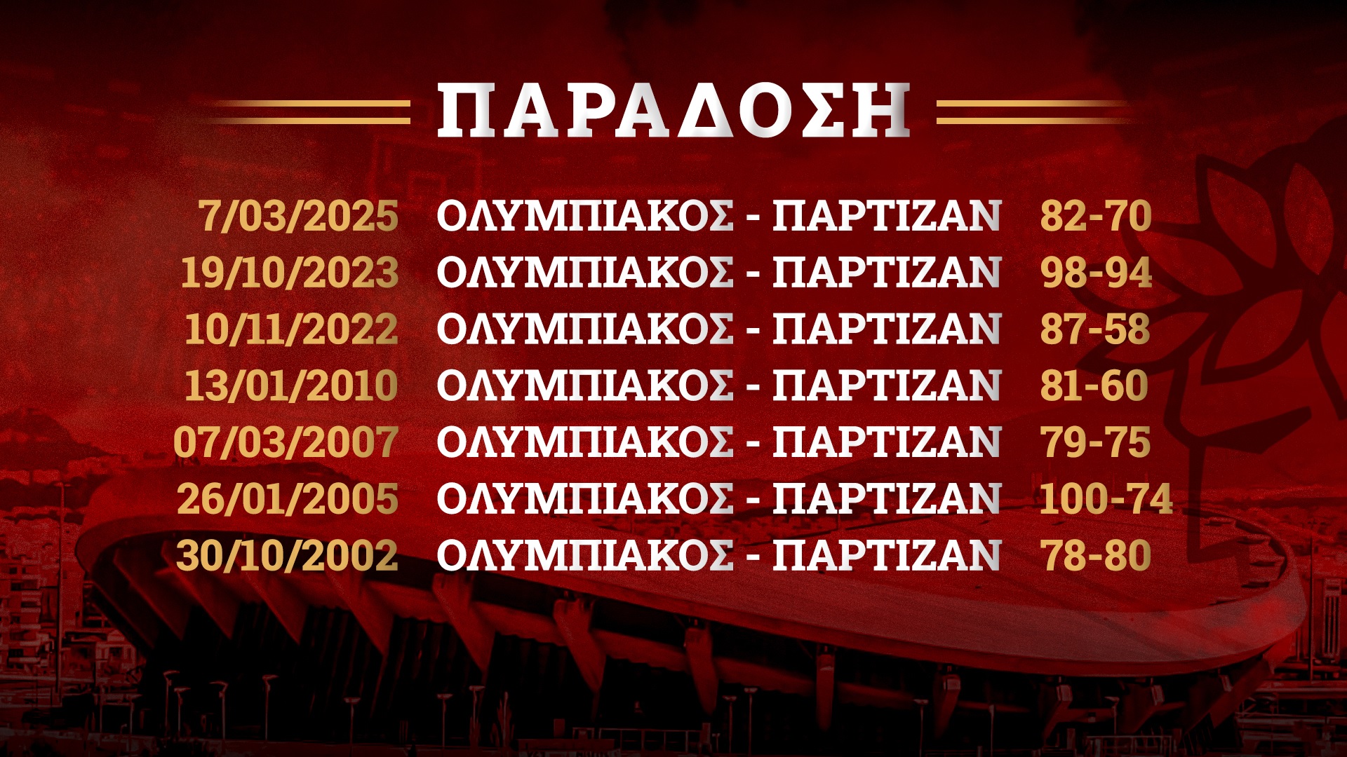 Οι πειραιώτες, καλούνται να παίξουν το ίδιο καλή άμυνα με το παιχνίδι κόντρα στην Χάποελ, για να περιορίσουν κυρίως την φροντ λάιν της Παρτίζαν. Αν το κάνουν και είναι στοιχειωδώς εύστοχοι στην επίθεση, μπορούν μπροστά στο κοινό τους που θα γεμίσει και πάλι το ΣΕΦ να πανηγυρίσουν μια ακόμα νίκη.