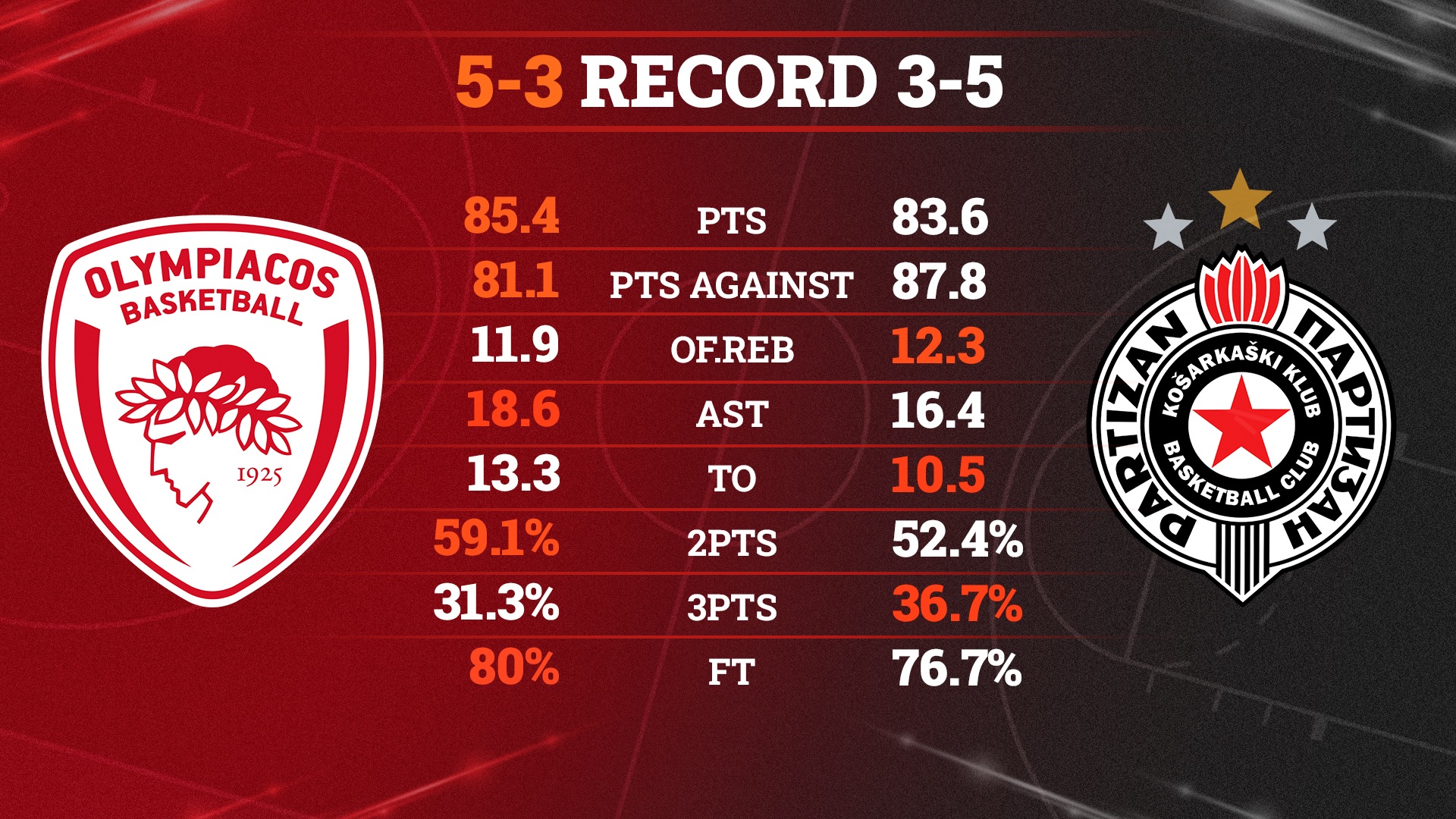 Βλέποντας τα στατιστικά τους σε άμυνα και επίθεση, το ματς παραπέμπει σε παιχνίδι λεπτομερειών που θα κριθεί με μικρή διαφορά στο σκορ. Ο Ολυμπιακός είναι το φαβορί, αλλά δεν αποκλείεται να δυσκολευτεί, καθώς η Παρτίζαν ψάχνει αντίδραση.