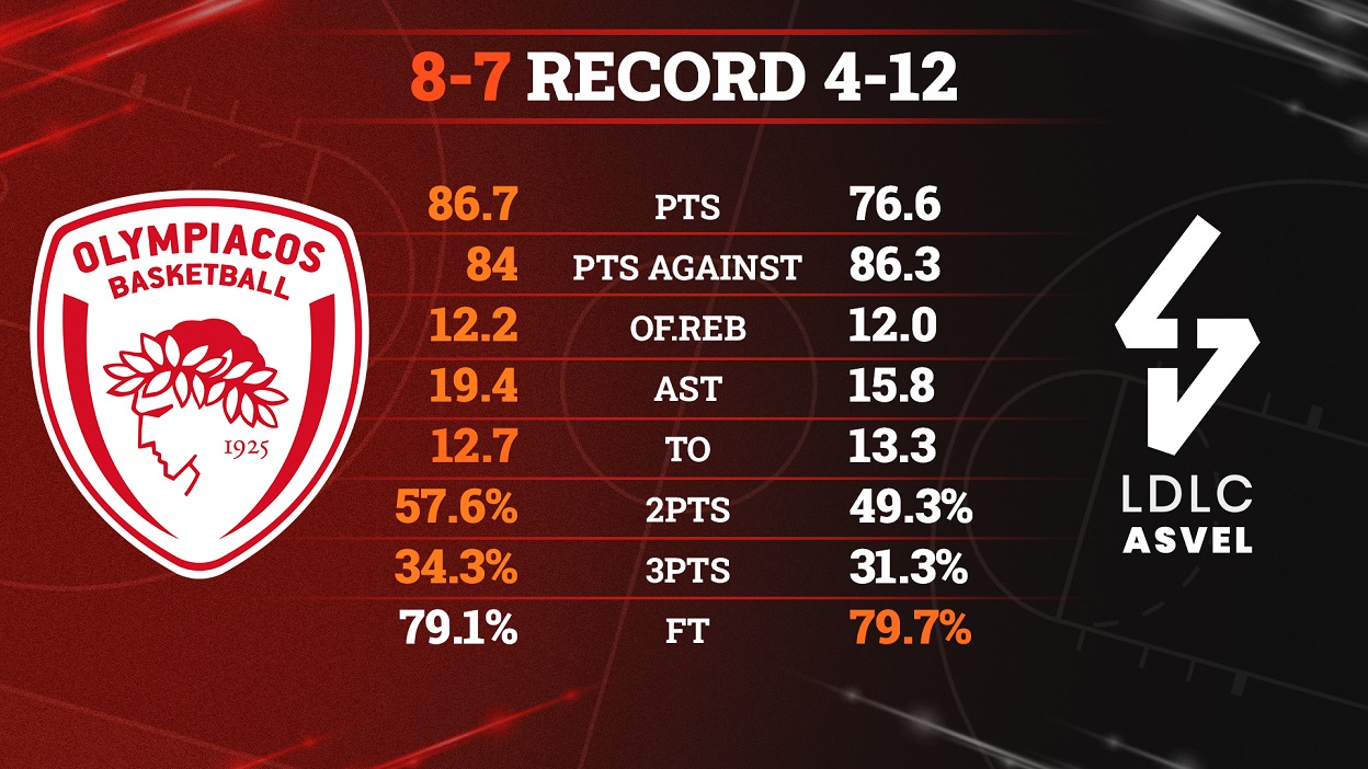 Οι «ερυθρόλευκοι» υποδέχονται την ουραγό της διοργάνωσης έχοντας πλέον ρεκόρ 8-7 και έχουν βγει με ματς λιγότερο εκτός της πρώτης δεκάδας. Η επιστροφή στις νίκες είναι επιτατική, καθώς εκτός όλων των άλλων, ακολουθούν τρία συνεχόμενα εκτός έδρας παιχνίδια με Βίρτους Μπολόνια, Παναθηναϊκό και Φενέρμπαχτσε, οπότε τα περιθώρια είναι πολύ στενά.