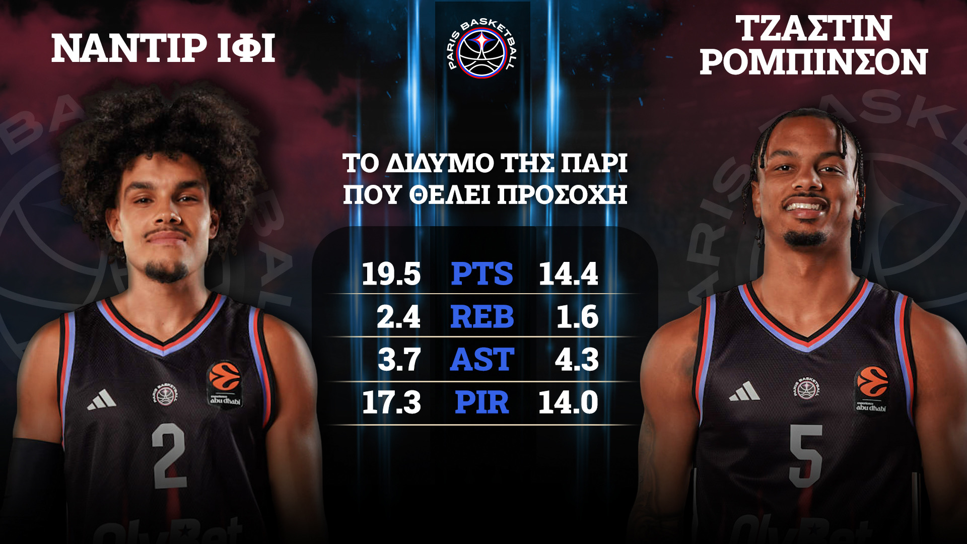 Για τους... λάτρεις της στατιστικής, οι Γάλλοι έρχονται στο Μαρούσι έχοντας την 5η καλύτερη επίθεση της EuroLeague (89 πόντοι ανά αγώνα). Η επιθετική ευχέρειά τους οφείλεται εν πολλοίς στο δίδυμο Ναντίρ Ίφι - Τζάστιν Ρόμπινσον. Παράλληλα, η Παρί είναι 1η σε επιθετικά ριμπάουντ κατά μέσο όρο (14). Ωστόσο, η άμυνα των φιλοξενούμενων είναι 18η σε σύνολο 20 ομάδων (91,6π. παθητικό ανά ματς).