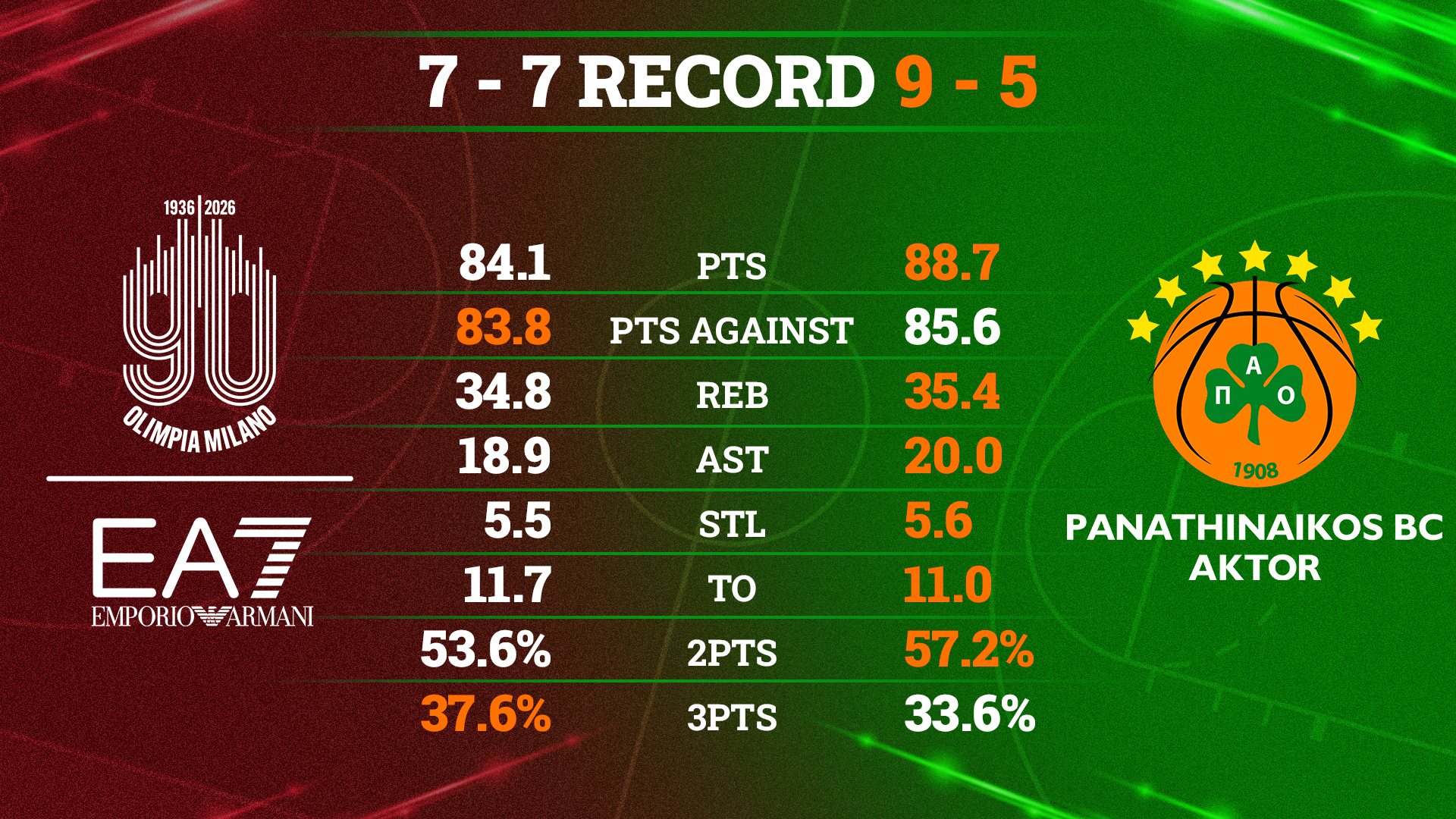 Πριν από το ξεκίνημα της 15ης αγωνιστικής, η Αρμάνι «συγκατοικούσε» με τη συμπατριώτισσα Βίρτους Μπολόνια στην 11η θέση, ένα... κλικ πίσω από τα play-in, με ρεκόρ 7-7. Καταλαβαίνει, λοιπόν, κανείς πως και για τους γηπεδούχους είναι ένα ματς με υψηλό διακύβευμα, ειδικά αν βάλουμε στην εξίσωση το γεγονός πως η Αρμάνι προέρχεται από μια ήττα στη Βιτόρια (88-78).