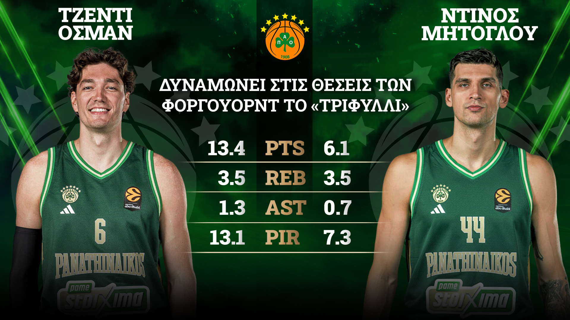 Ως γνωστόν, οι «πράσινοι» θα έχουν ξανά στη διάθεσή τους στο δίδυμο Τζέντι Όσμαν - Ντίνος Μήτογλου. Κάτι που σημαίνει πως στις θέσεις των φόργουορντ υπάρχουν ξανά οι λύσεις που μπορούν να υπηρετήσουν διαφορετικά «θέλω» του Τούρκου προπονητή και να δώσουν «ανάσες» σε παίκτες που έχουν καταπονηθεί, όπως ο Χουάντσο Ερνανγκόμεθ.