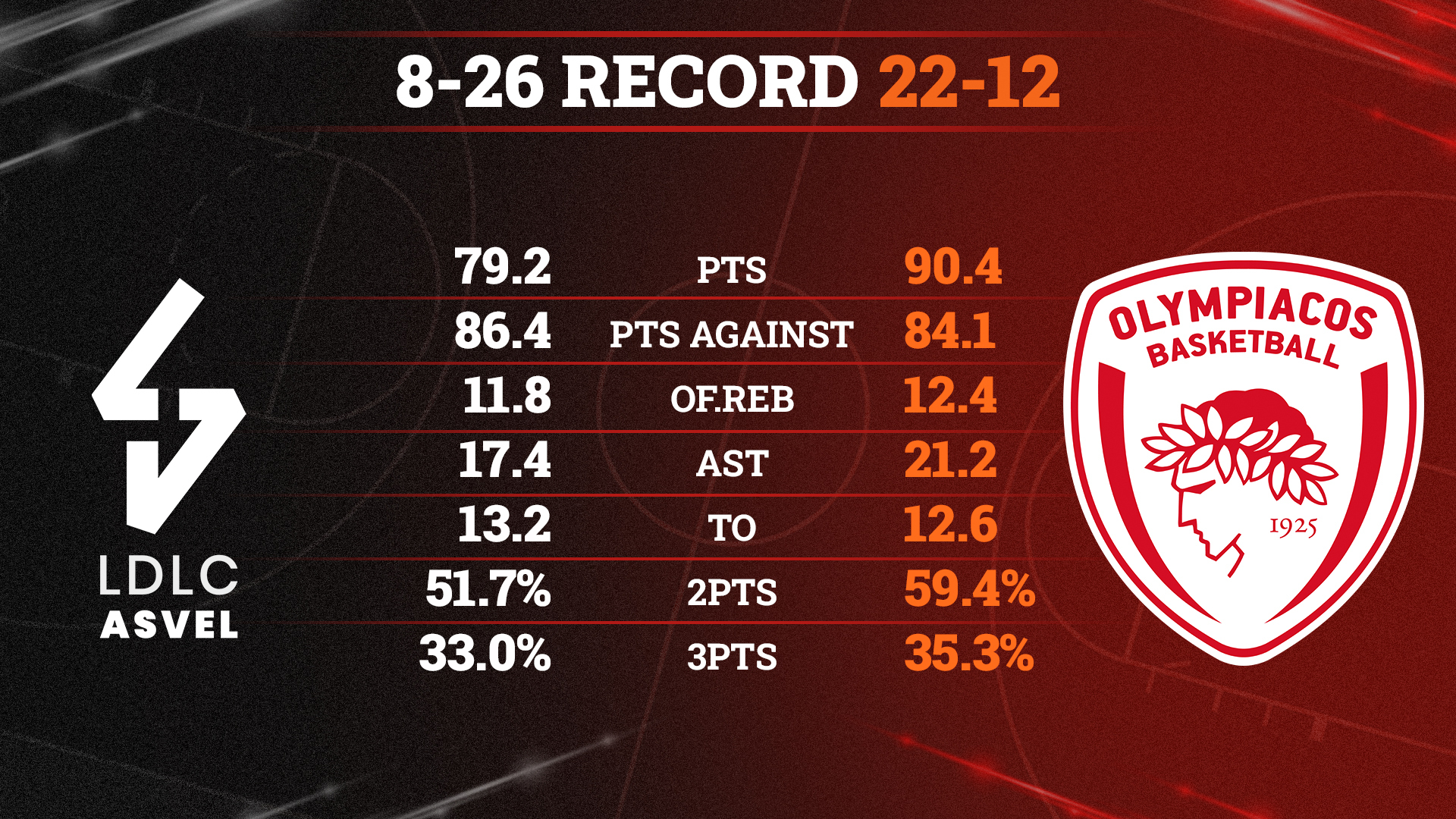Έχει αθλητικούς, αλλά… άγουρους ψηλούς (Εντιαγέ, Τραορέ, Βουατιέ) και μετά την αποχώρηση του Νάντο Ντε Κολό της λείπει η προσωπικότητα. Στην πανέμορφη έδρα της «LDLC Arena», μετράει φέτος έξι νίκες και δέκα ήττες, με μέσο όρο 80,4 πόντους στην επίθεση και 84,9 στην άμυνα. Δύσκολα, όσο ανταγωνιστική και αν παρουσιαστεί, θα προβάλει σθεναρή αντίσταση σε μια ομάδα που έχει υψηλό κίνητρο και περισσότερο ποιότητα.