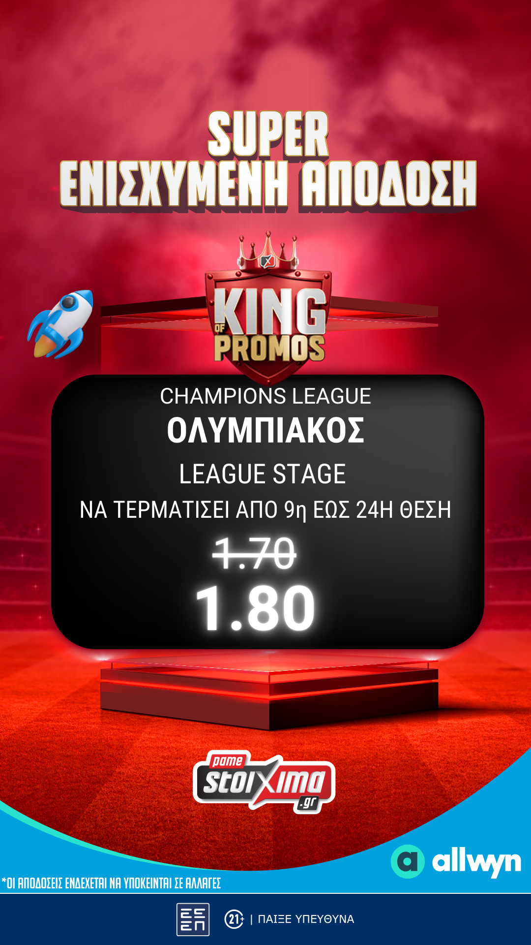 Η τελευταία αγωνιστική της League Phase του Champions League φέρνει ένταση, σασπένς και δυνατές προσφορές στο Pamestoixima.gr, με το Άγιαξ-Ολυμπιακός να ξεχωρίζει και τις ενισχυμένες αποδόσεις να απογειώνουν τη δράση.