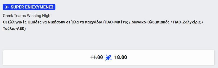 Αν οι ελληνικές ομάδες πανηγυρίσουν νίκες σε όλα τα παιχνίδια, η απόδοση εκτοξεύεται στο 18.00* από 11.00!