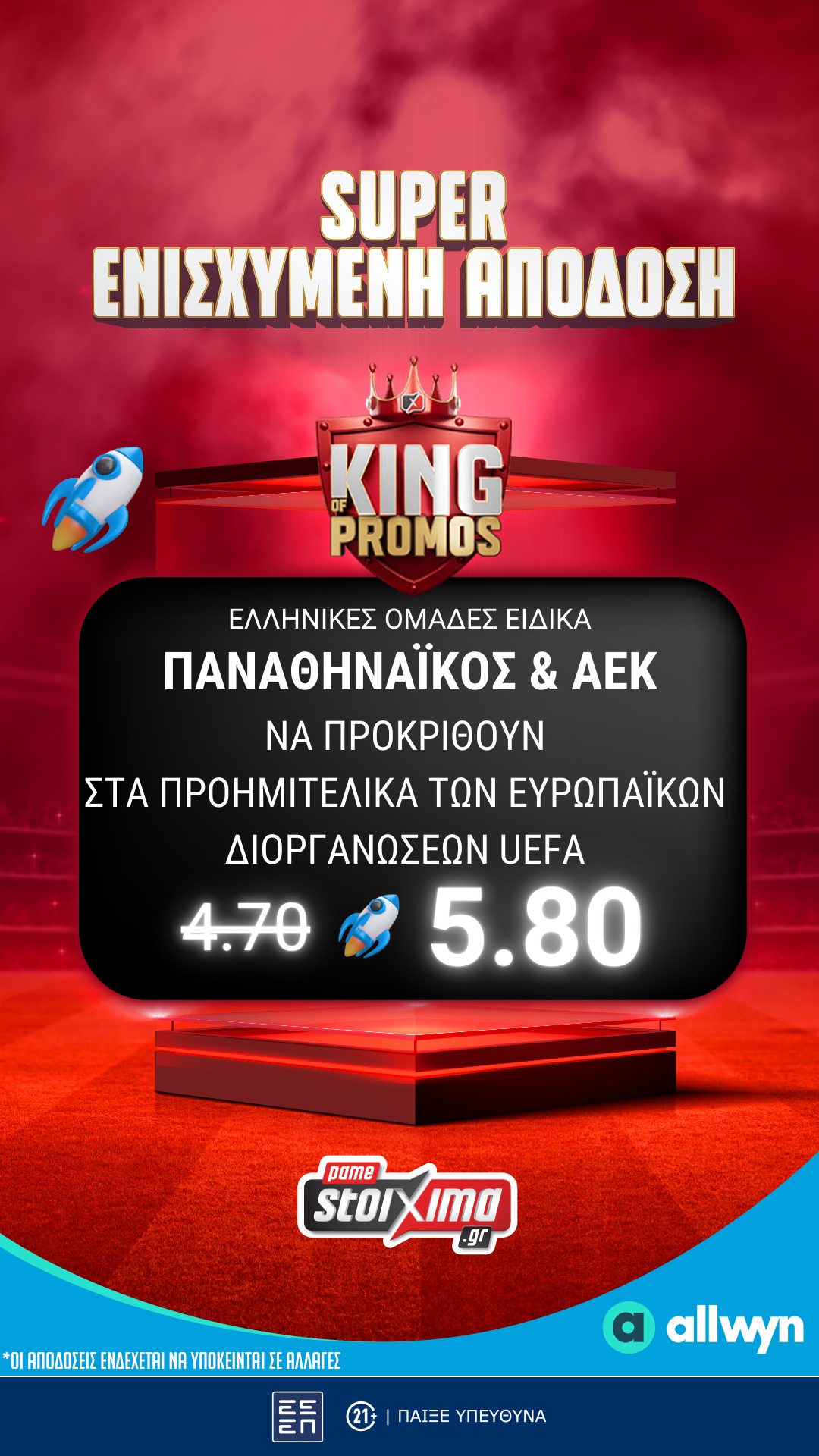 σε απόδοση 5.80* από 4.70!