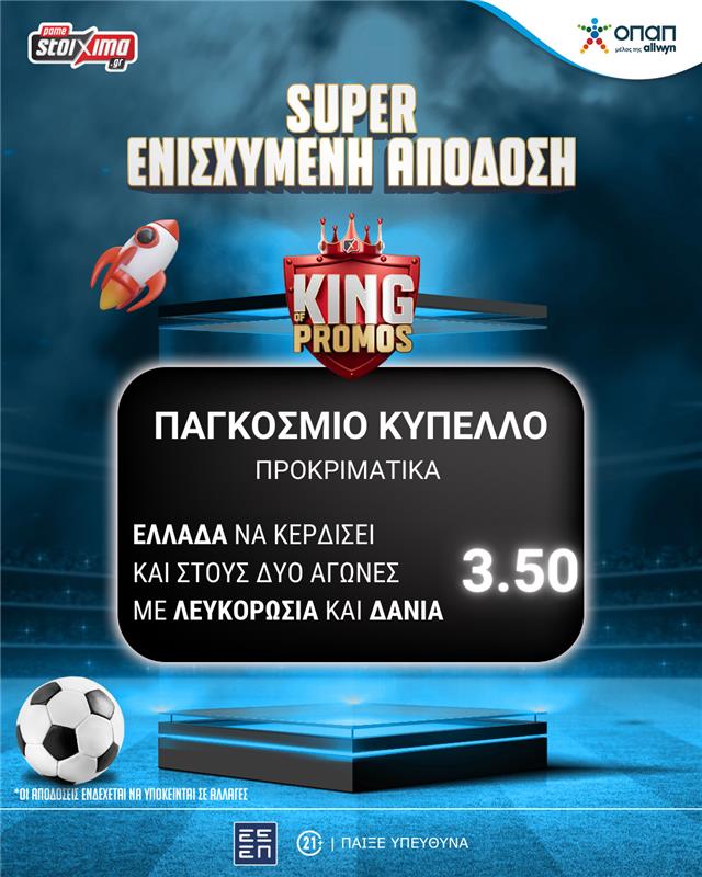- Η Ελλάδα να κερδίσει και στους δύο αγώνες με Λευκορωσία και Δανία προσφέρεται σε ΣΟΥΠΕΡ ενισχυμένη απόδοση 3.50*